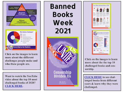 Beginning in the 1980's the American Library Association (ALA) began recognizing books that were being challenged in school settings based on their content. Usually observed during the last week of September, Banned Books Week celebrates our freedom to read. This year, the theme is Censorship Divides Us.